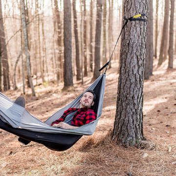 Enjoy ultimate relaxation with the ELK Single Hammock, crafted from lightweight parachute nylon for durability and comfort. Perfect for outdoor adventures, this hammock comes with sturdy tree straps for easy setup. The sleek black and gray design adds a touch of style, making it an ideal companion for camping, hiking, or lounging in the backyard.